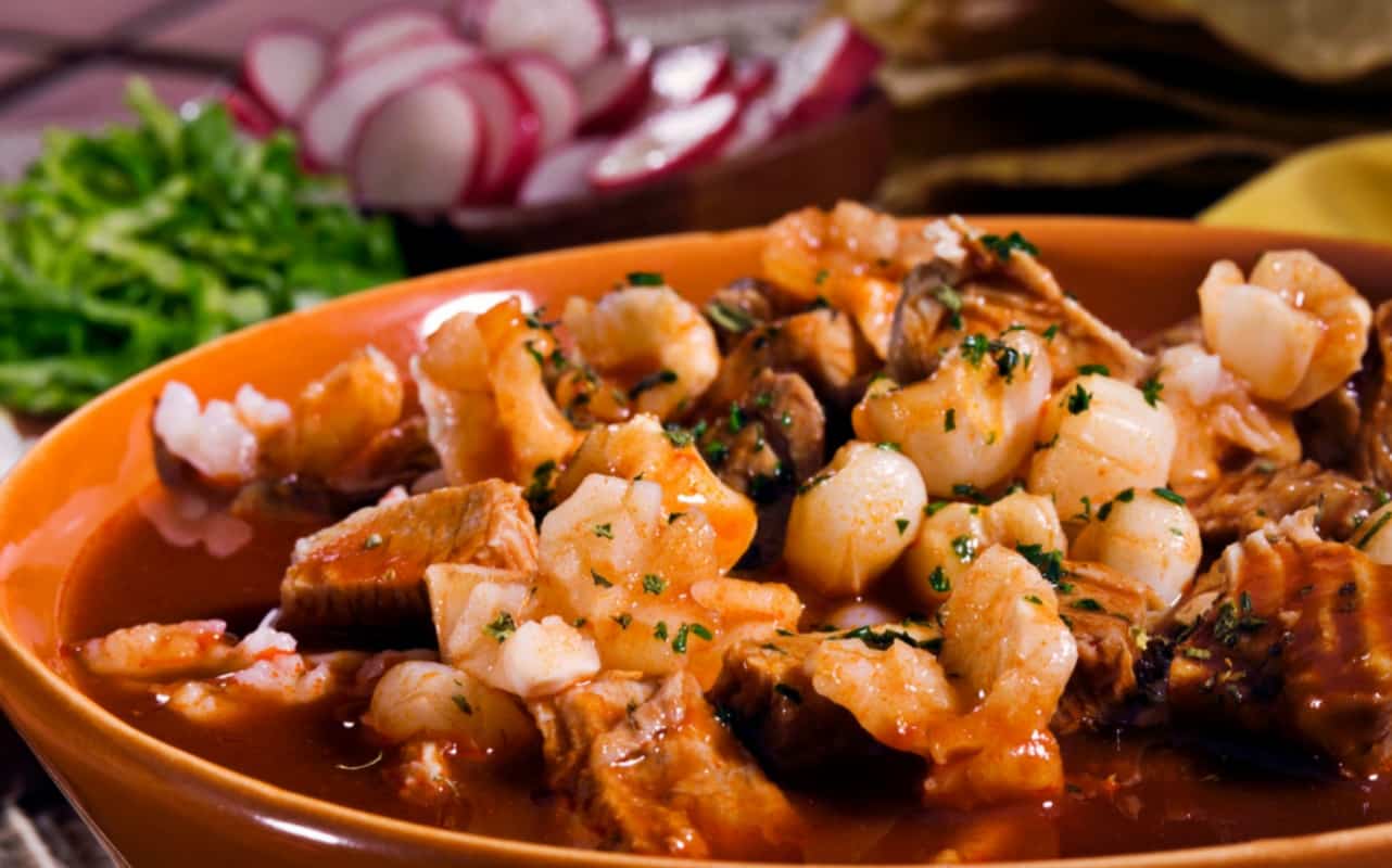 It is made with ingredients such as dried shrimp, small shrimp, hominy corn, ancho and guajillo chilies, and spices. In Puerto Vallarta, locals usually enjoy it with lettuce, onion, radishes, cream, and limes.