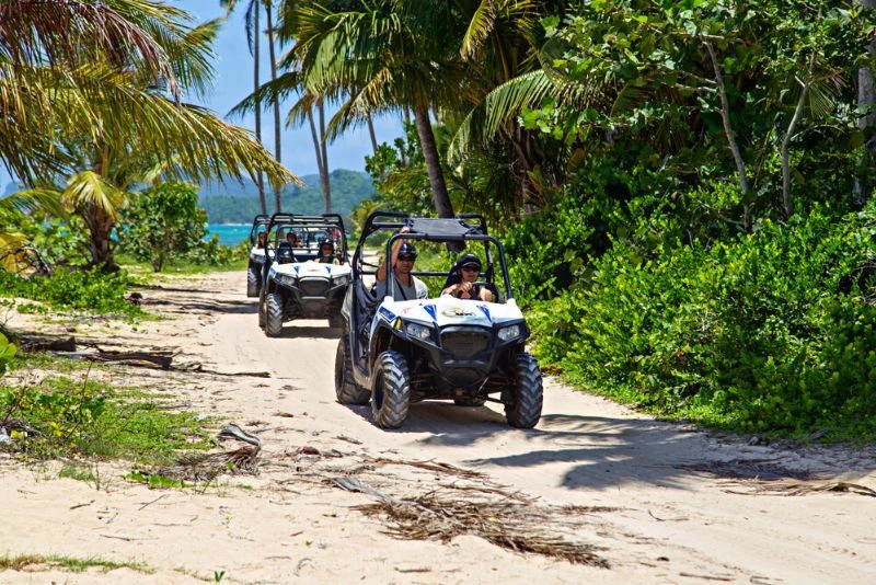 Another of the most requested excursions in Punta Cana is the buggy tour, where you’ll drive at full speed through muddy trails and coffee and cocoa plantations until you reach some of the best beaches in the Dominican Republic. These open-top, all-terrain vehicles with two or four seats are easy to drive (similar to a quad bike), and a short safety briefing by an expert is always provided before starting the adventure. The route is guided by one or more instructors.