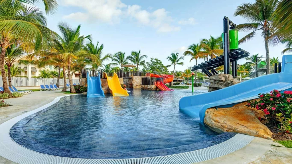 One of the resort’s biggest attractions is its large water park, considered one of the best family water parks in Punta Cana. The park includes slides of various heights, kids’ pools, water buckets, tunnels, and themed play areas—guaranteeing hours of fun.