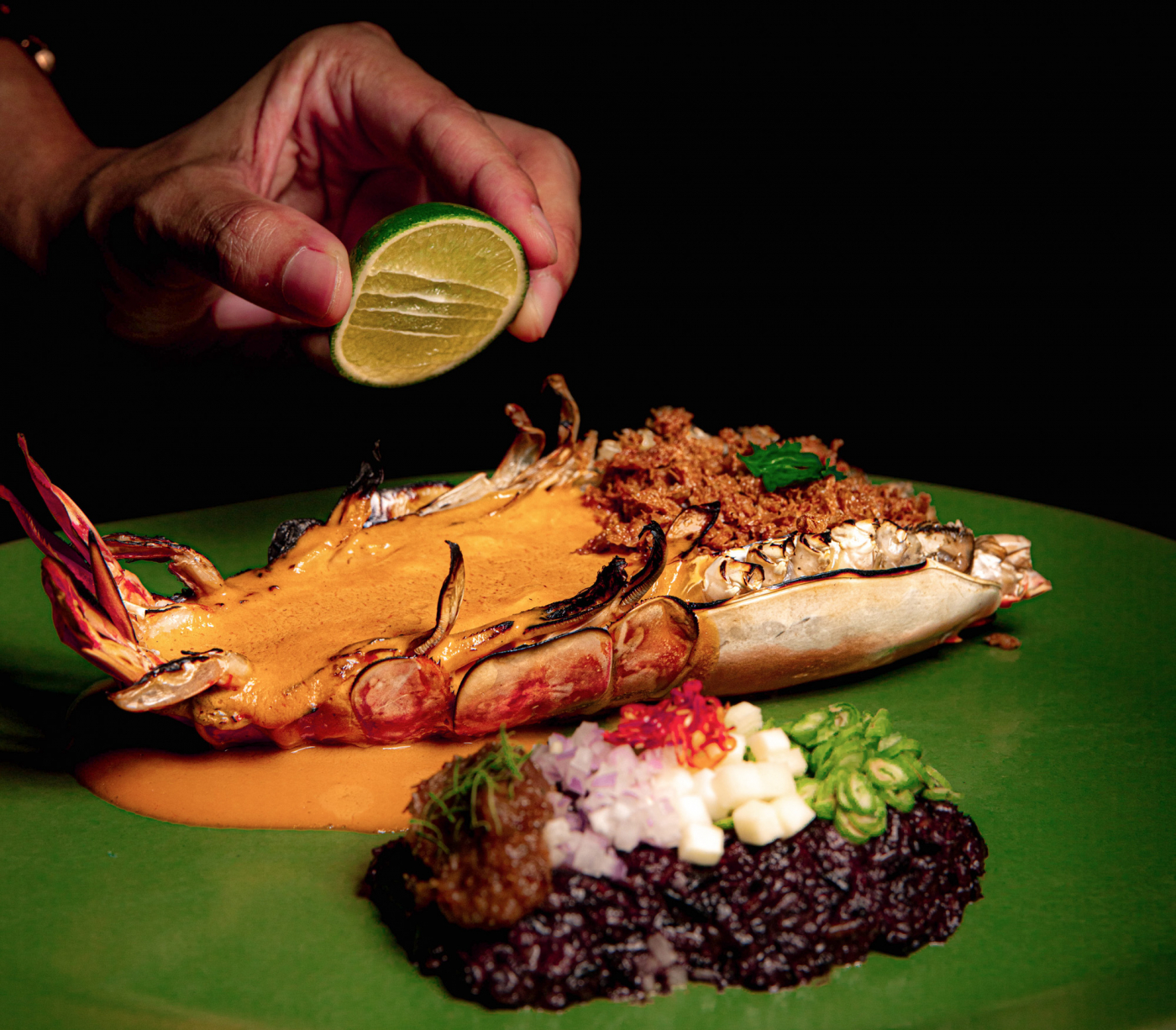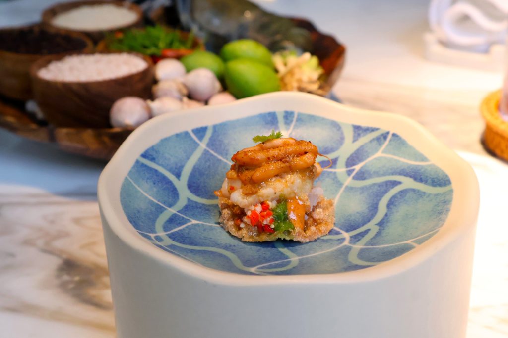 Sorn is world-renowned for its creative cuisine. Its menu includes 22 different dishes, primarily featuring seafood such as crab, seaweed, Phuket lobster, and local fish. Ingredients are sourced from local farmers and fishermen in southern Thailand.